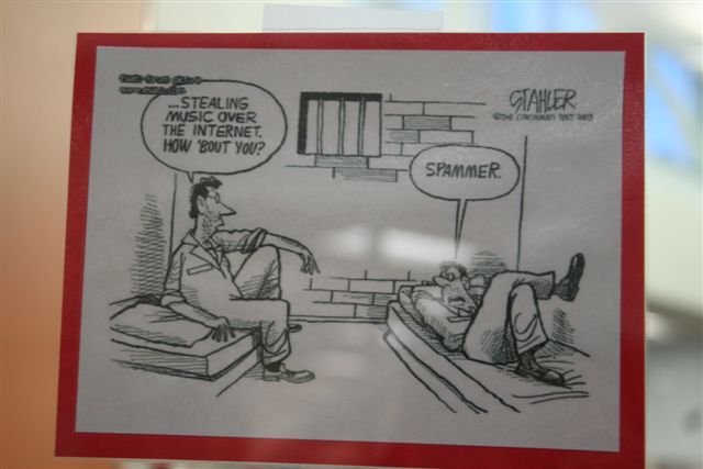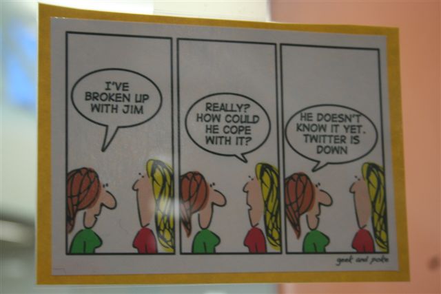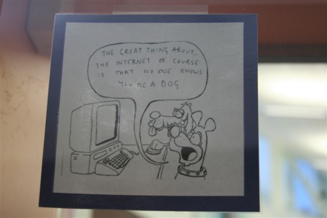 We had an old computer monitor in the back room, so we taped speech bubbles off it with various media terms and sites. We were going to put a tag line on the case saying “What’s your info IQ? but it was looking pretty busy in the end.