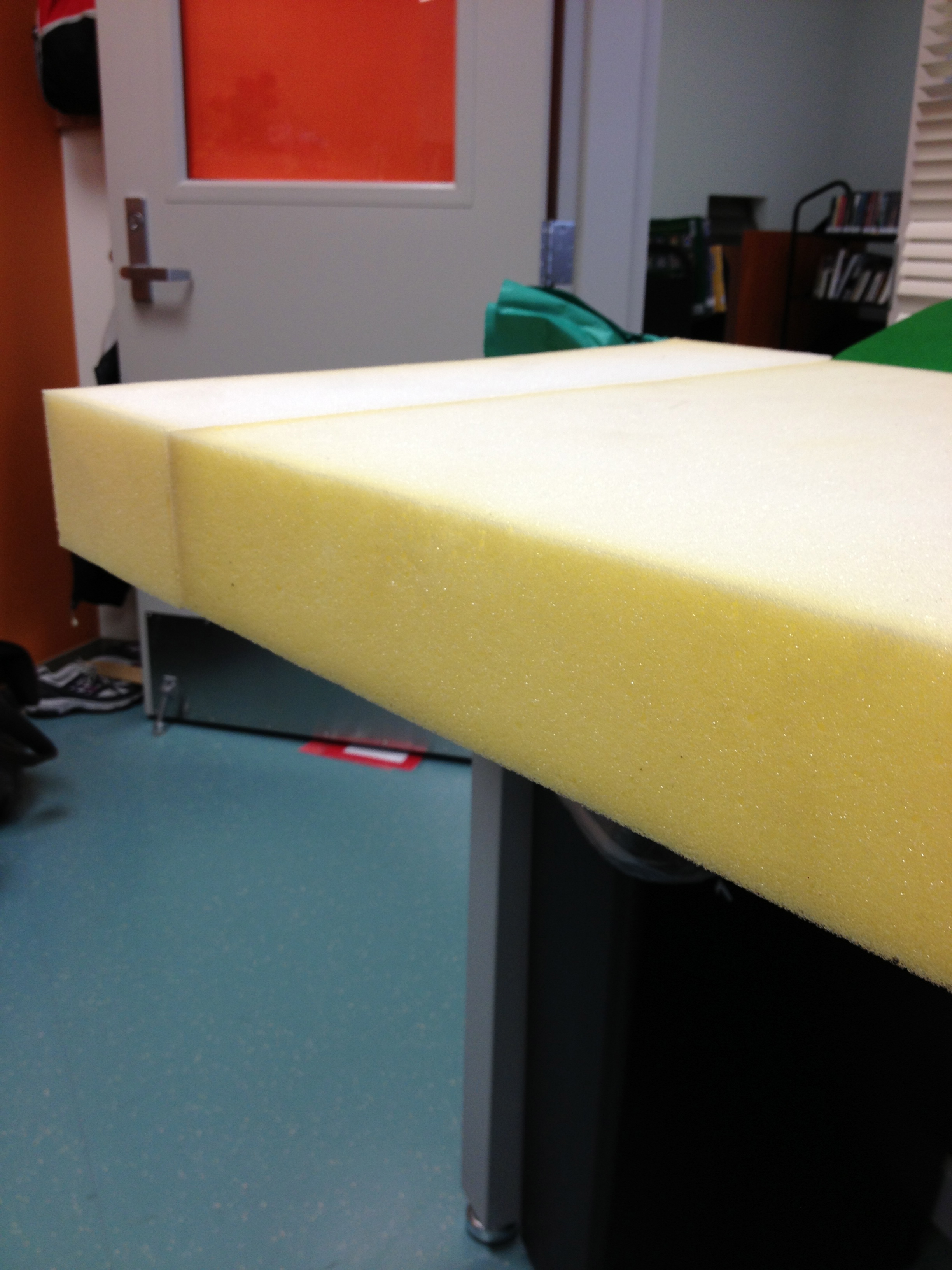 IMG_3225 I originally wanted to display the book open with laminated sheets of white paper attached to it somehow, and then my giant beanstalk was going to be “growing” right out of the pages. Couldn’t figure that one out. We decided instead to use a big block of styrofoam, also found in the garage, and display the book standing up.