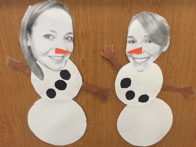 Welcome to winter! A colleague took photos of our entire staff and turned us into snowpeople, so we proudly displayed ours on the circulation desk.
